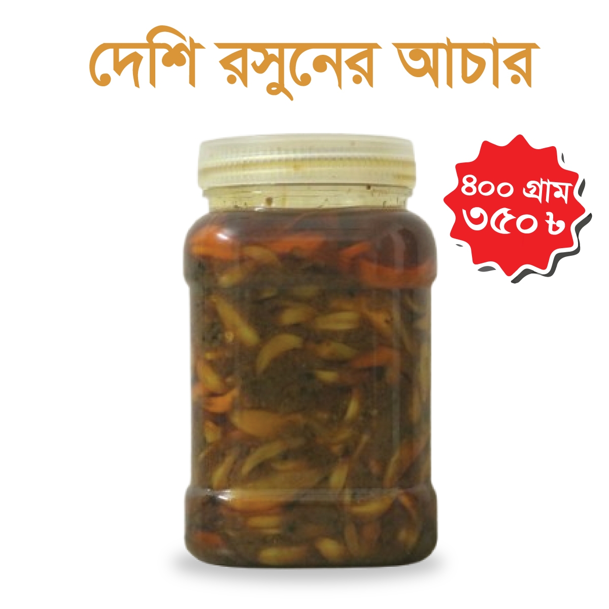 দেশি রসুনের আচার হলো খাঁটি দেশি রসুন, বাছাইকৃত মসলা ও বিশুদ্ধ তেলে তৈরি একটি ঐতিহ্যবাহী ঘরোয়া আচার। ঝাঁঝালো স্বাদ ও তীব্র সুগন্ধের কারণে এটি ভাত, খিচুড়ি, রুটি ও পরোটার সঙ্গে অতুলনীয়।